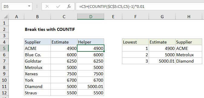 With this configuration, VLOOKUP scans the lookup values until it finds a value higher than the value in G4, then VLOOKUP "drops back" to the previous row and returns the tax rate from the second column in the table.