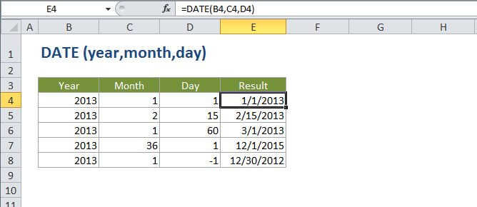 =DATE (year, month, day)