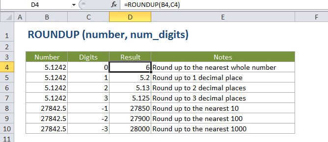 =ROUNDUP (number, num_digits)