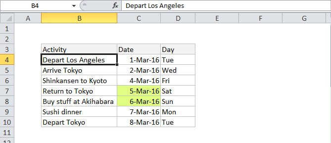 For example, if you have dates in the range B4:G11, and want to highlight cells that occur in the next 30 days, select the range and create a new CF rule that uses this formula: