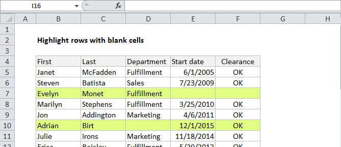 Highlight entire rows