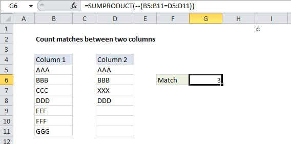 {=SUM(--(B:B=B5))}I haven't verified this myself, but it appears that several functions have the same problem, including SUMIF, SUMIFS, COUNTIF, COUNTIFS, AVERAGEIF, and AVERAGEIFS.