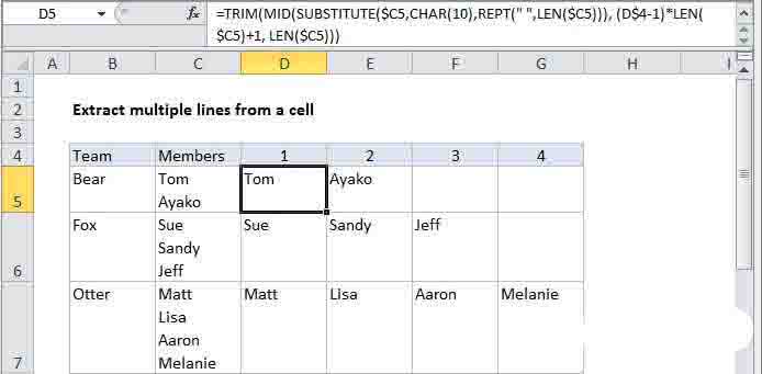 At the core, this formula uses the MID function to extract characters starting at the second to the last space. The MID function takes just 3 arguments: the text to work with, the starting position, and the number of characters to extract.