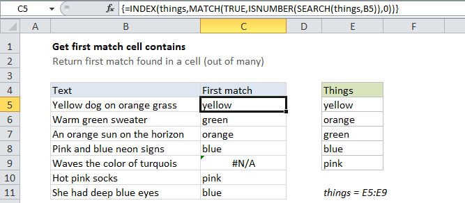which are fed into the MATCH function as the lookup array, with a lookup value of TRUE, and a match type of zero for exact match. In exact match mode, the MATCH function returns the position of the first TRUE in the array, which is 1 in the formula in F5. This position goes into INDEX as the row number, with an array based on the named range "entry":