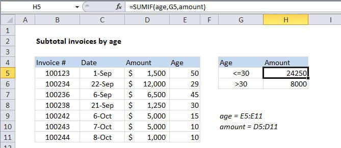 Subtotal invoices by age