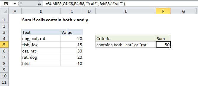 Sum if cells contain specific text