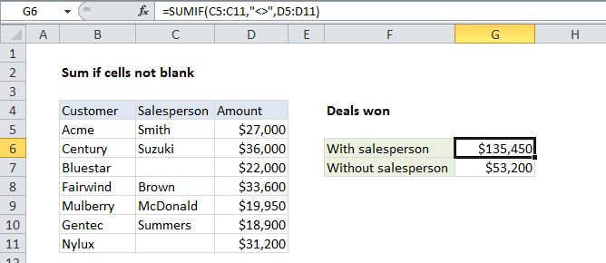 A more elegant solution is to give the SUMIF function more than one value for the criteria, using an array constant. To do this, construct a normal SUMIF, but package the criteria in array syntax — curly braces, with inpidual items separated by commas. Finally, wrap the entire SUMIF function in the SUM function. This is necessary because SUMIF will return one result for each item in the criteria array and these results need to be added together: